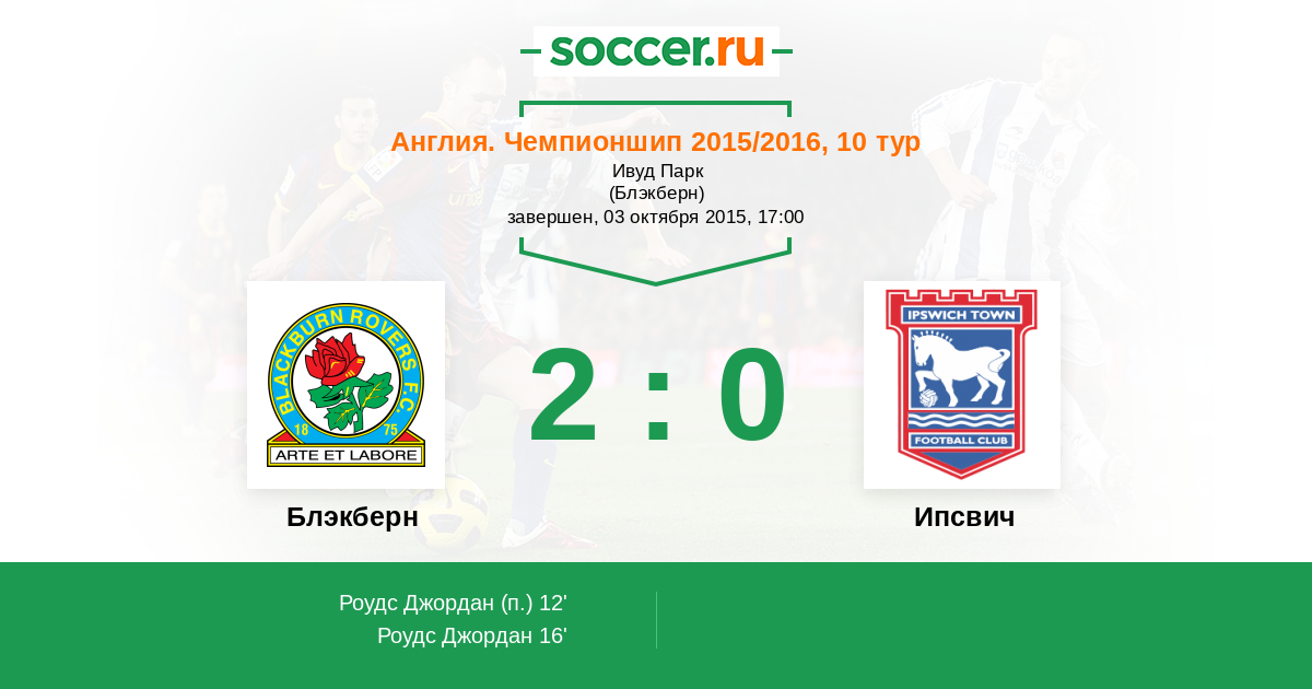 Англия. Чемпионшип 15.10.2016 Блэкберн Логотип футбольный клуб Блэкберн 0:0 Логотип футбольный клуб Ипсвич Ипсвич