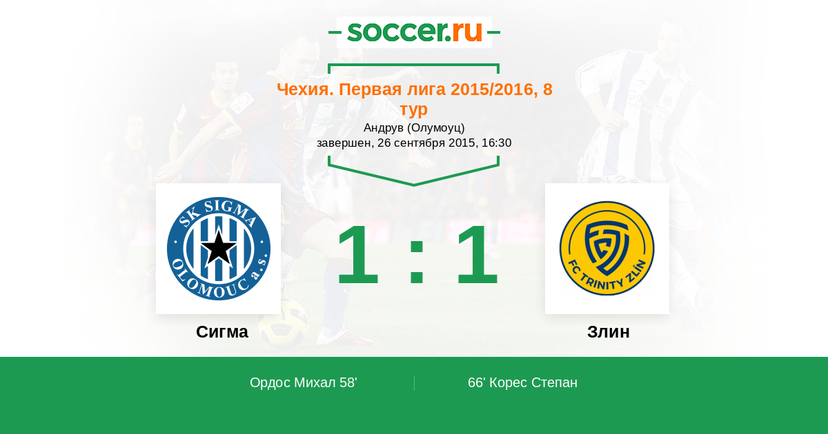 Чехия. Вторая лига 09.05.2015 Сигма Логотип футбольный клуб Сигма (Оломоуц) 4:2 Логотип футбольный клуб Злин Злин