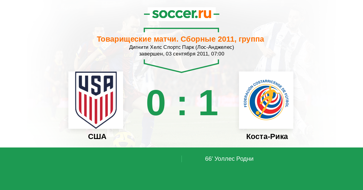 Отбор ЧМ. КОНКАКАФ 07.09.2013 Коста-Рика Логотип Коста-Рика 3:1 Логотип США США