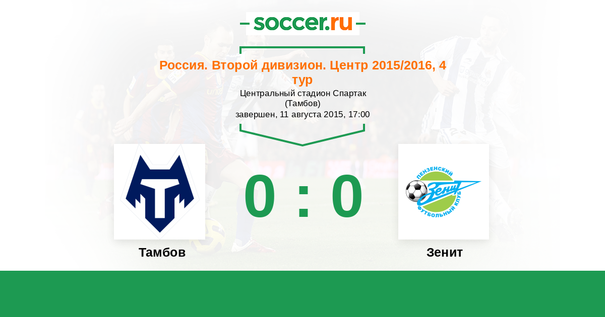 Россия. Вторая лига. Группа 3 16.08.2014 Тамбов Логотип футбольный клуб Тамбов 1:1 Логотип футбольный клуб Зенит (Пенза) Зенит