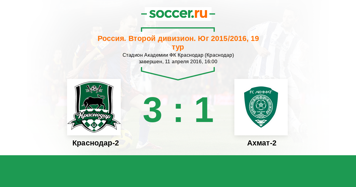 Россия. Вторая лига. Группа 1 11.04.2016 Краснодар-2   3:1 Логотип футбольный клуб Ахмат-2 (Грозный) Ахмат-2