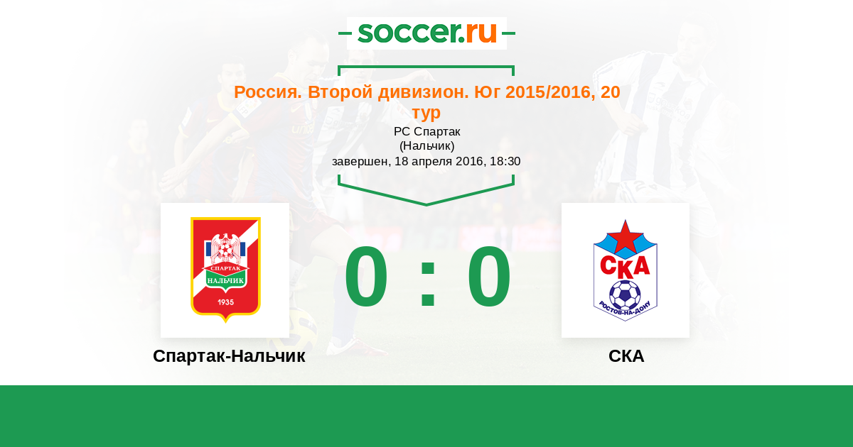 Россия. Вторая лига. Группа 1 04.04.2018 СКА Логотип футбольный клуб СКА (Ростов-на-Дону) 1:0 Логотип футбольный клуб Спартак-Нальчик Спартак-Нальчик