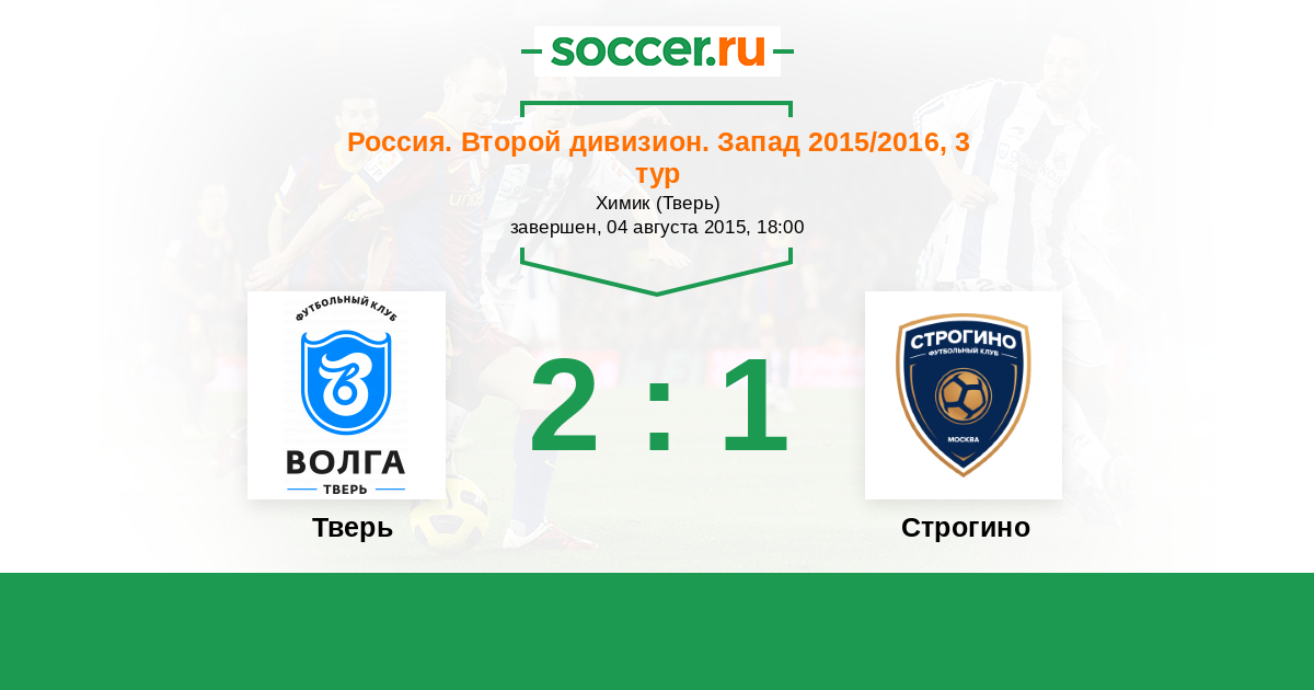 Россия. Вторая лига. Группа 2 20.07.2016 Строгино Логотип футбольный клуб Строгино (Москва) 1:0 Логотип футбольный клуб Тверь Тверь