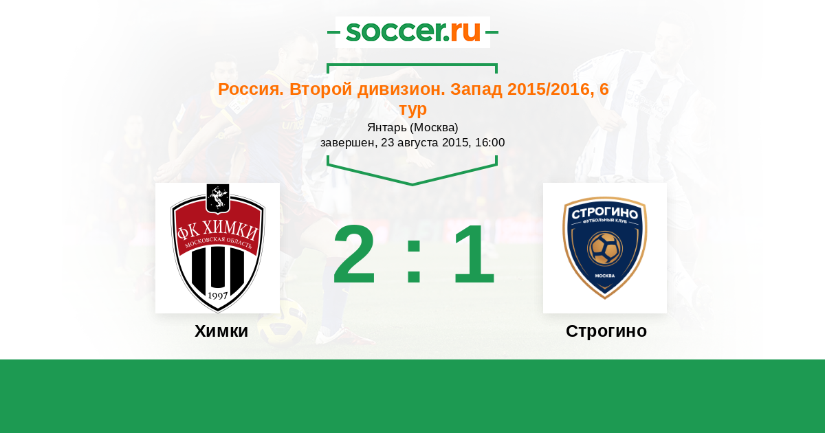 Россия. Вторая лига. Группа 2 17.04.2015 Химки Логотип футбольный клуб Химки 1:0 Логотип футбольный клуб Строгино (Москва) Строгино