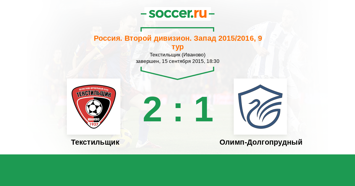 Россия. Вторая лига. Группа 2 29.09.2014 Текстильщик Логотип футбольный клуб Текстильщик (Иваново) 1:1 Логотип футбольный клуб Долгопрудный Долгопрудный