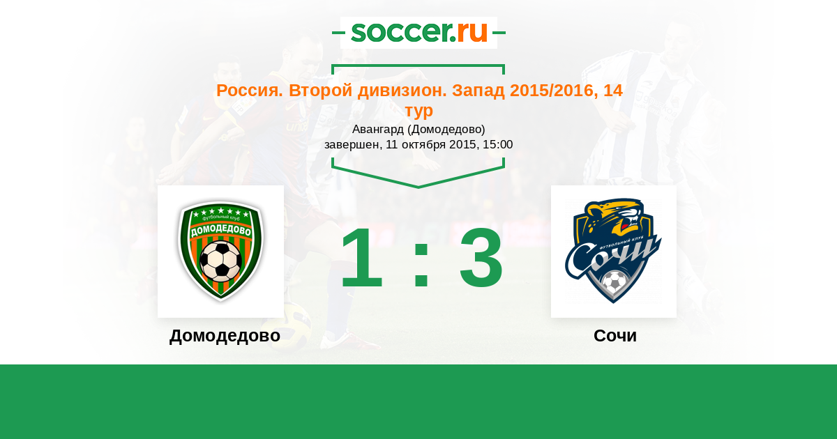 Россия. Вторая лига. Группа 2 22.04.2017 Домодедово Логотип футбольный клуб Домодедово (Москва) 0:2 Логотип футбольный клуб ЦРФСО Смоленск ЦРФСО Смоленск