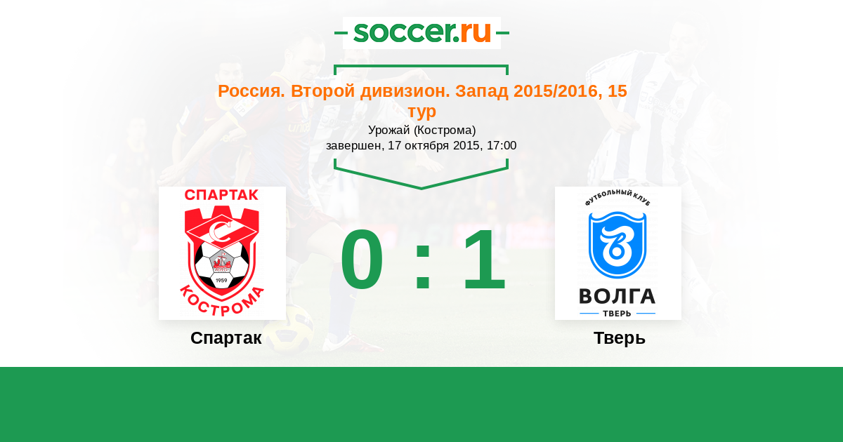 Россия. Вторая лига. Группа 2 07.05.2015 Тверь Логотип футбольный клуб Тверь 2:1 Логотип футбольный клуб Спартак Кострома Спартак Кострома