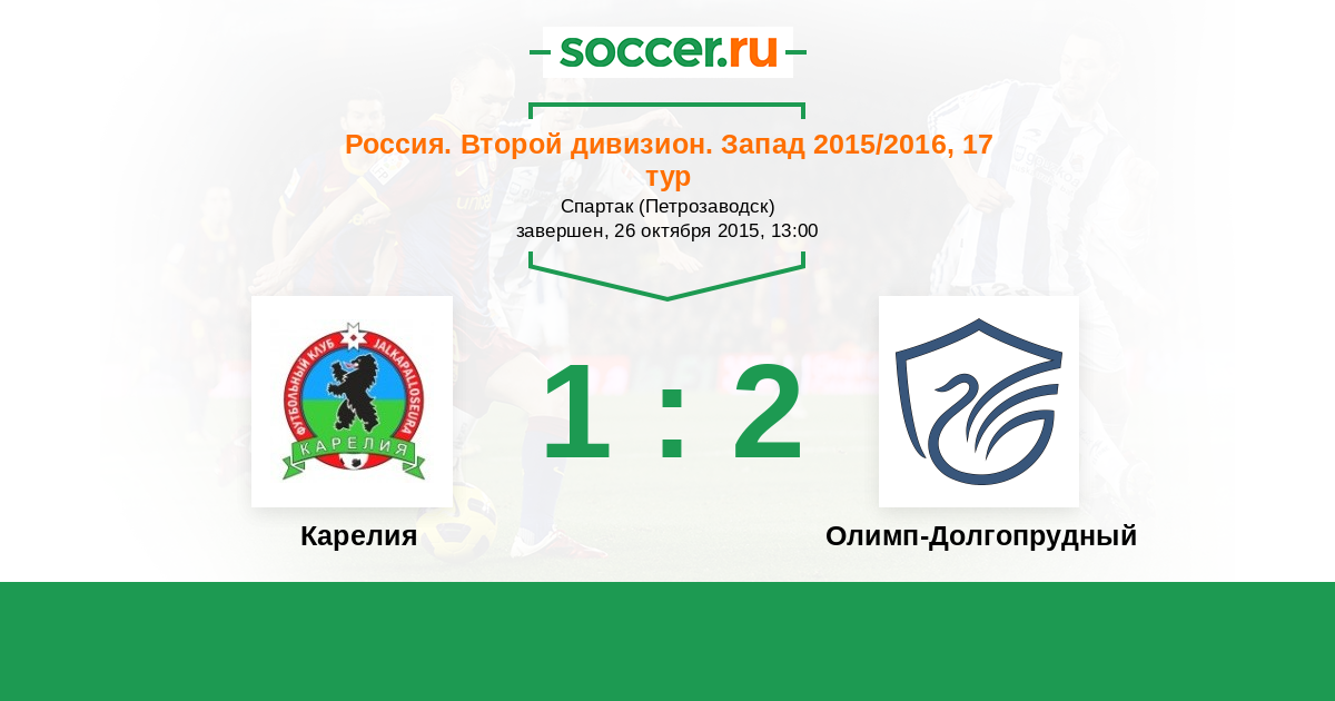 Россия. Вторая лига. Группа 2 04.08.2015 Долгопрудный Логотип футбольный клуб Долгопрудный 3:2 Логотип футбольный клуб Карелия (Петрозаводск) Карелия
