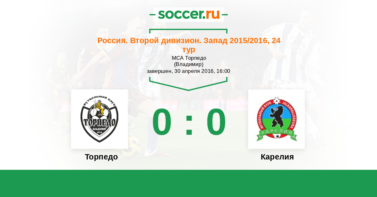 Россия. Вторая лига. Группа 2 30.04.2016 Торпедо   0:0 Логотип футбольный клуб Карелия (Петрозаводск) Карелия
