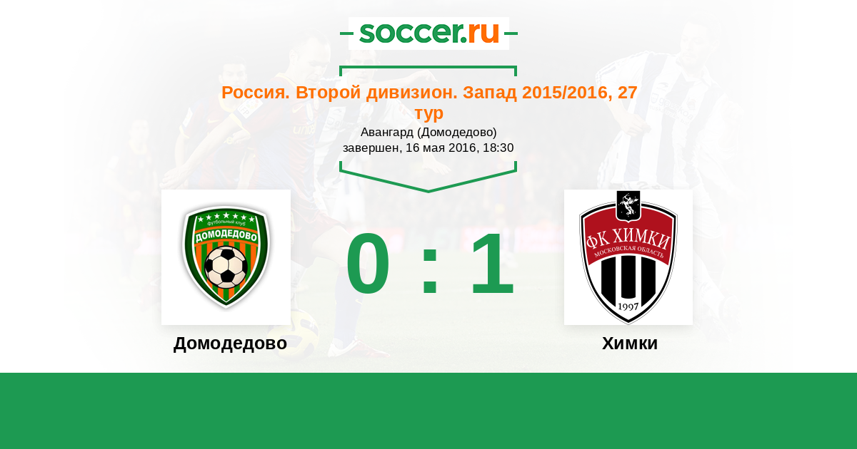 Россия. Вторая лига. Группа 2 30.05.2015 Химки Логотип футбольный клуб Химки 1:0 Логотип футбольный клуб Домодедово (Москва) Домодедово