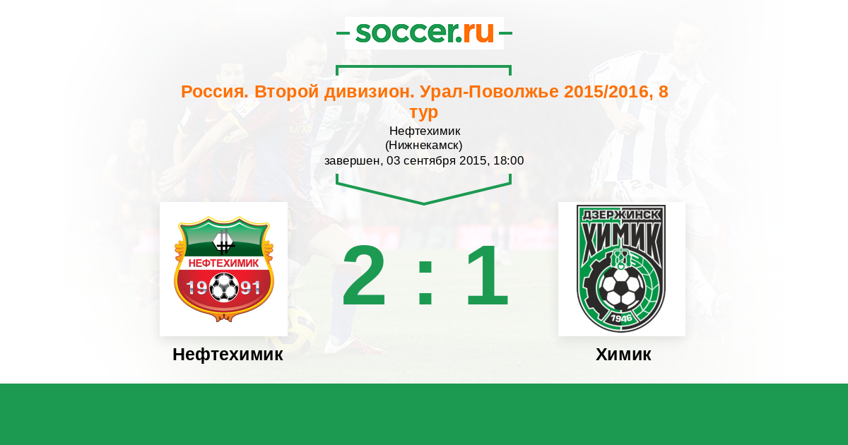 Россия. Вторая лига. Группа 4 20.10.2015 Химик Логотип футбольный клуб Химик (Дзержинск) 0:2 Логотип футбольный клуб Нефтехимик (Нижнекамск) Нефтехимик