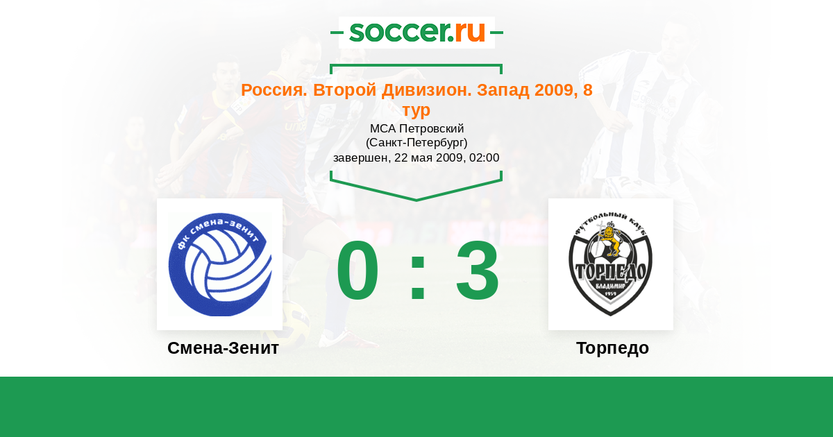 Россия. Вторая лига. Группа 2 03.09.2009 Торпедо   1:2 Логотип футбольный клуб Смена-Зенит (Санкт-Петербург) Смена-Зенит