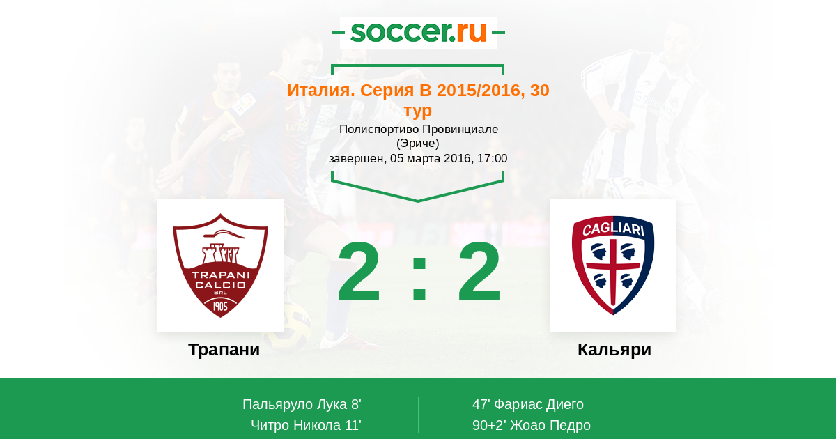 Кальяри 5:2 4:1 1:1