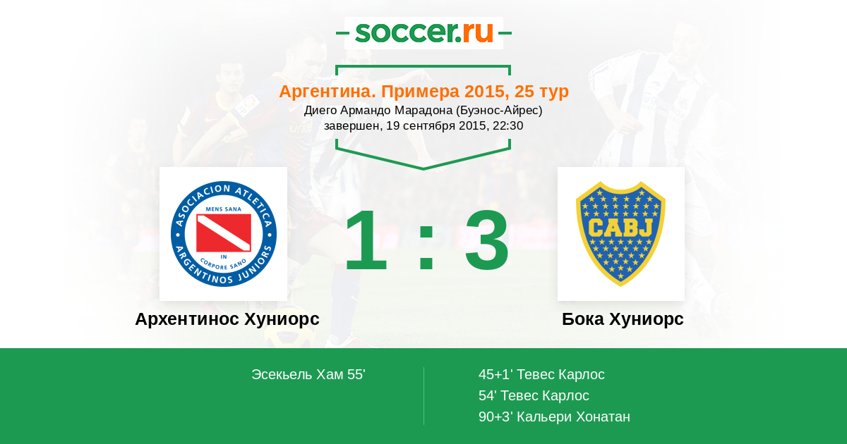 Аргентина. Суперлига 01.05.2016 Архентинос Хуниорс Логотип футбольный клуб Архентинос Хуниорс (Буэнос-Айрес) 1:0 Логотип футбольный клуб Бока Хуниорс (Буэнос-Айрес) Бока Хуниорс