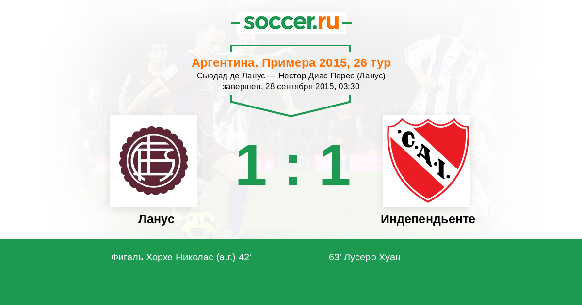 Аргентина. Суперлига 07.06.2011 Индепендьенте Логотип футбольный клуб Индепендьенте (Авельянеда) 1:2 Логотип футбольный клуб Ланус Ланус