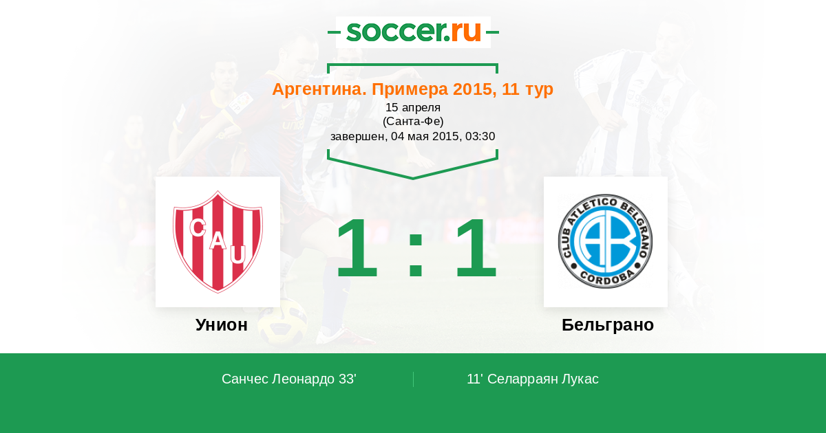 Аргентина. Суперлига 23.08.2011 Унион Логотип футбольный клуб Унион (Санта-Фе) 0:0 Логотип футбольный клуб Бельграно (Кордоба) Бельграно