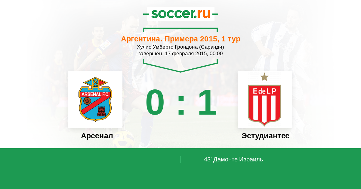 Аргентина. Суперлига 07.02.2014 Эстудиантес Логотип футбольный клуб Эстудиантес (Ла-Плата) 1:0 Логотип футбольный клуб Арсенал (Саранди) Арсенал