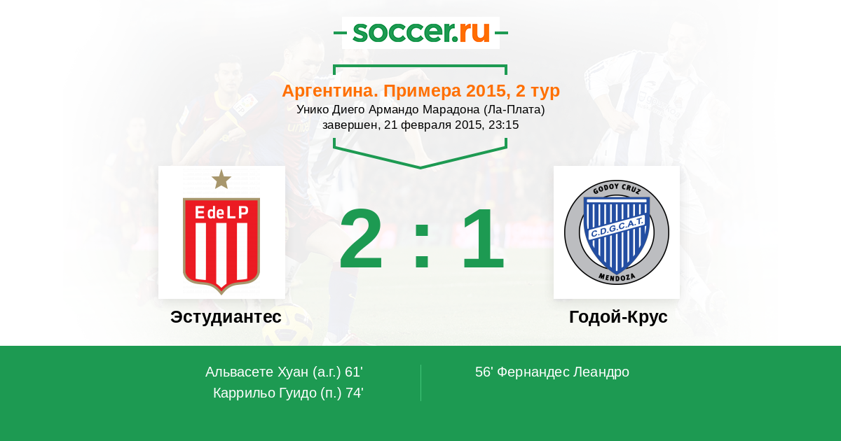 Аргентина. Суперлига 16.11.2014 Годой-Крус Логотип футбольный клуб Годой-Крус 1:1 Логотип футбольный клуб Эстудиантес (Ла-Плата) Эстудиантес