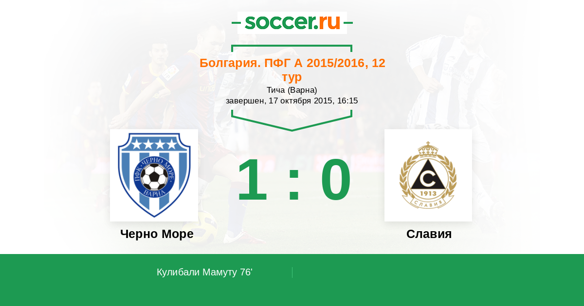 Болгария. Первая лига 02.08.2015 Славия Логотип футбольный клуб Славия (София) 0:1 Логотип футбольный клуб Черно Море (Варна) Черно Море