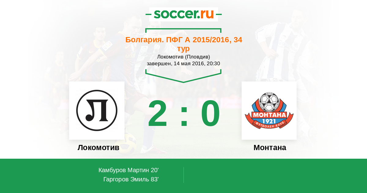 Болгария. Первая лига 12.03.2016 Монтана Логотип футбольный клуб Монтана 0:1 Логотип футбольный клуб Локомотив (Пловдив) Локомотив
