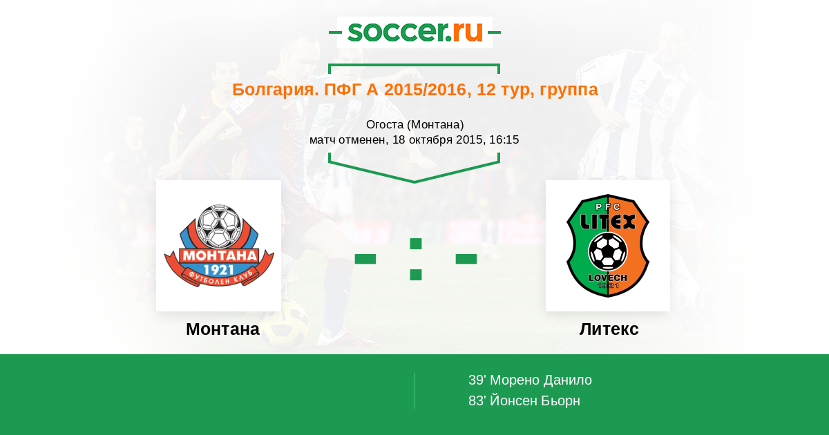 Болгария. Первая лига 27.10.2012 Монтана Логотип футбольный клуб Монтана 1:3 Логотип футбольный клуб Литекс (Ловеч) Литекс