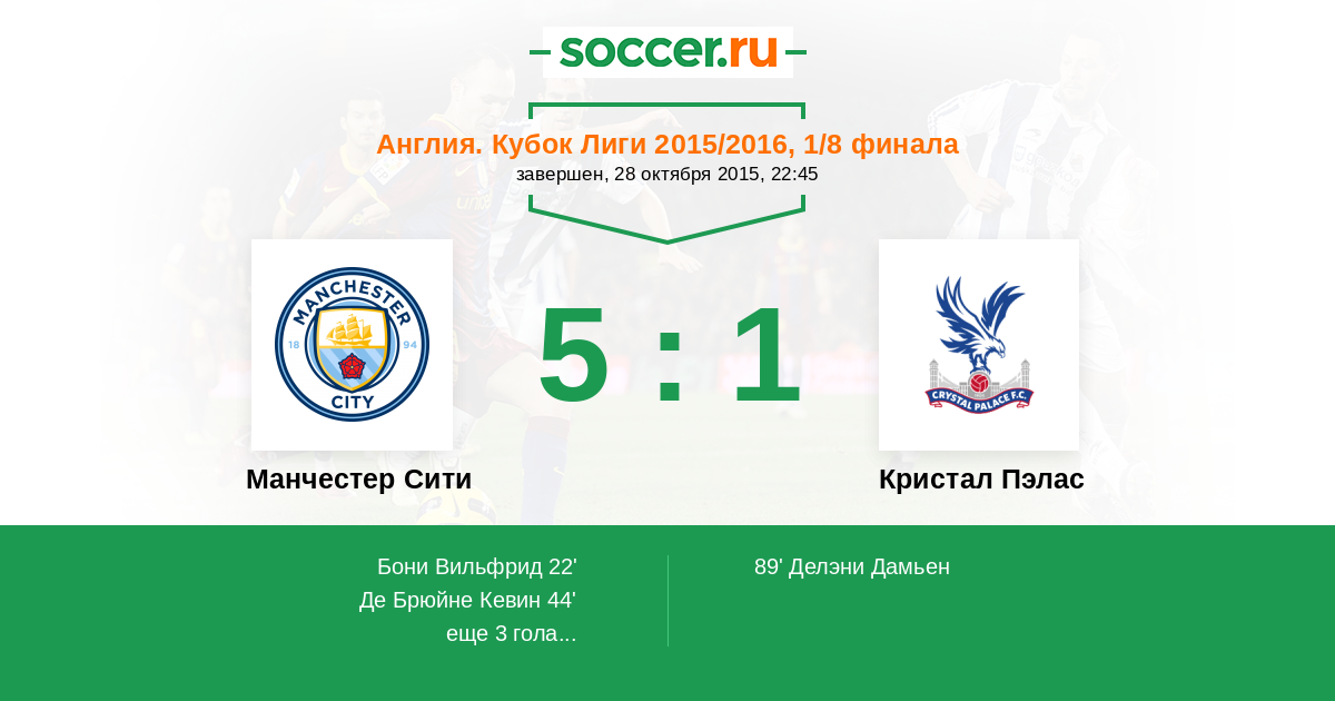 Англия. Премьер-Лига 16.01.2016 Манчестер Сити Логотип футбольный клуб Манчестер Сити 4:0 Логотип футбольный клуб Кристал Пэлас (Лондон) Кристал Пэлас