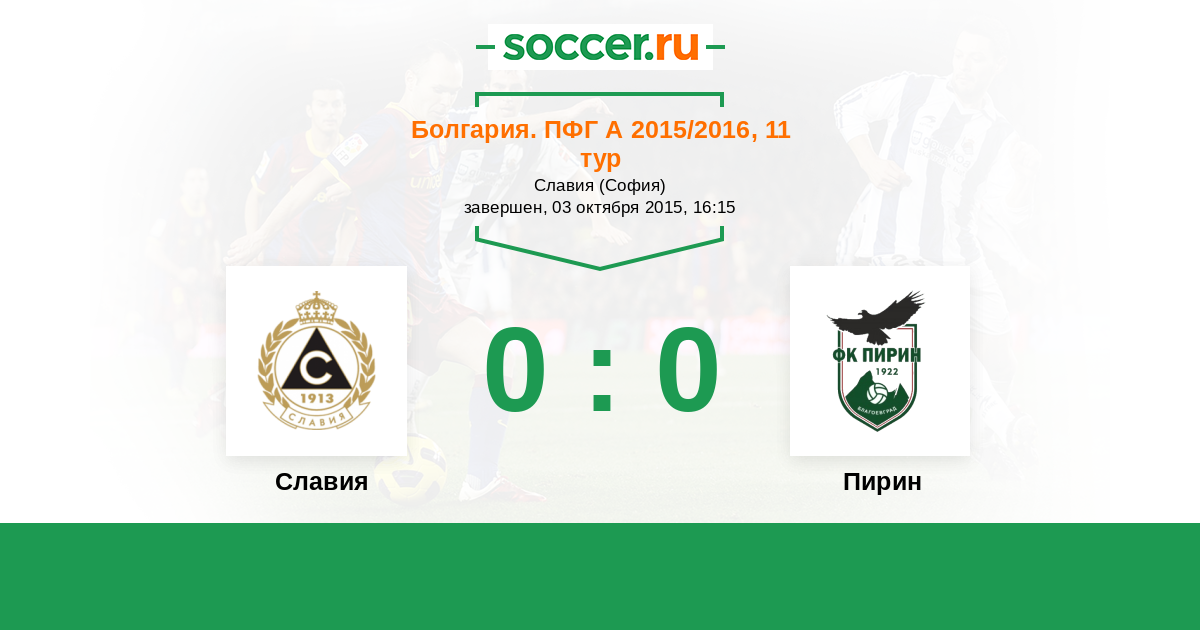 Болгария. Первая лига 11.12.2015 Пирин Логотип футбольный клуб Пирин (Благоевград) 0:3 Логотип футбольный клуб Славия (София) Славия