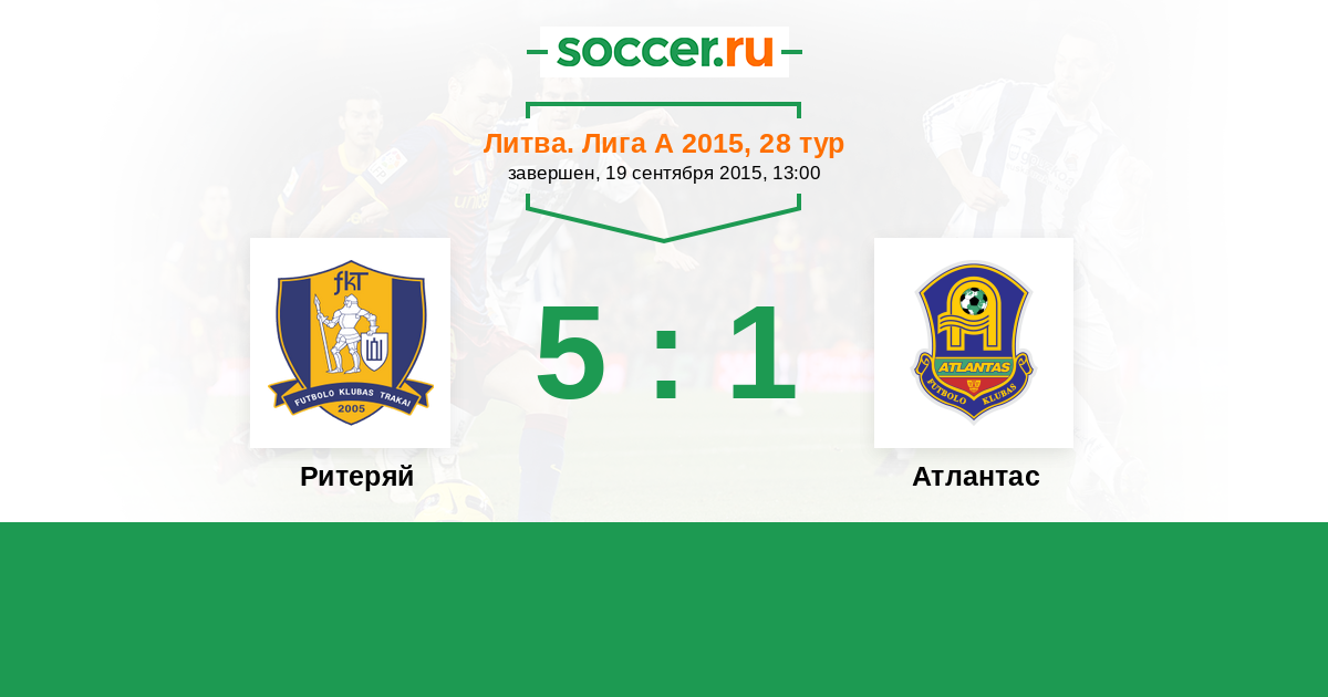 Литва. Лига А 04.11.2019 Ритеряй Логотип футбольный клуб Ритеряй (Тракай) 5:2 Логотип футбольный клуб Атлантас (Клайпеда) Атлантас