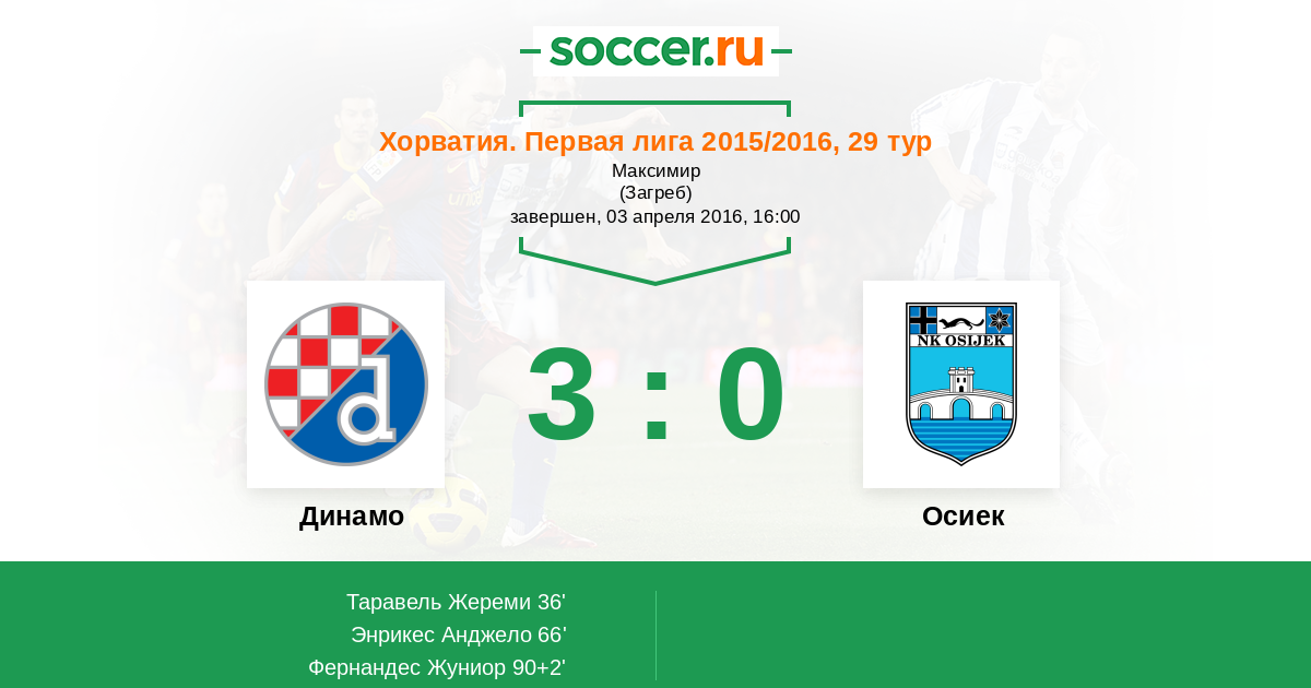 Хорватия. Первая лига 25.09.2015 Динамо Логотип футбольный клуб Динамо (Загреб) 4:1 Логотип футбольный клуб Осиек Осиек