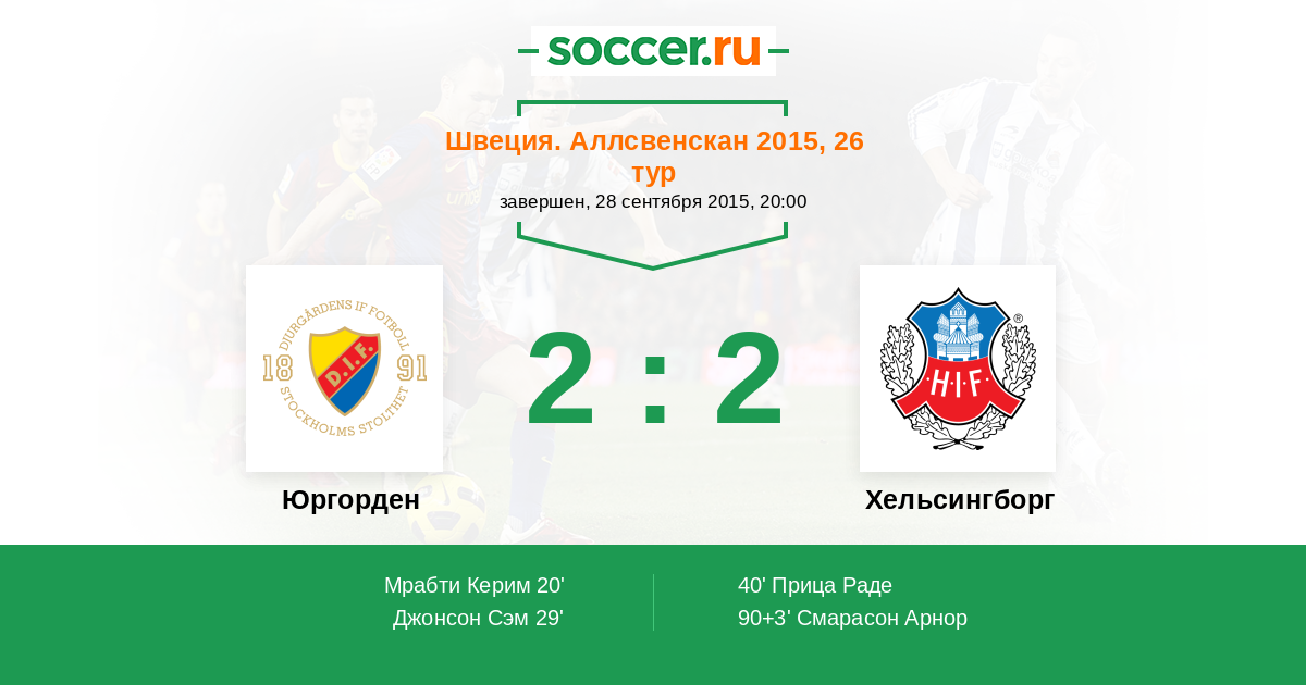 Швеция. Аллсвенскан 04.08.2014 Юргорден Логотип футбольный клуб Юргорден (Стокгольм) 2:2 Логотип футбольный клуб Хельсингборг Хельсингборг