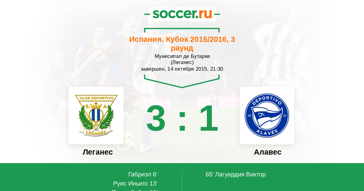 Испания. Сегунда 28.02.2016 Леганес Логотип футбольный клуб Леганес 2:0 Логотип футбольный клуб Алавес (Витория-Гастейс) Алавес