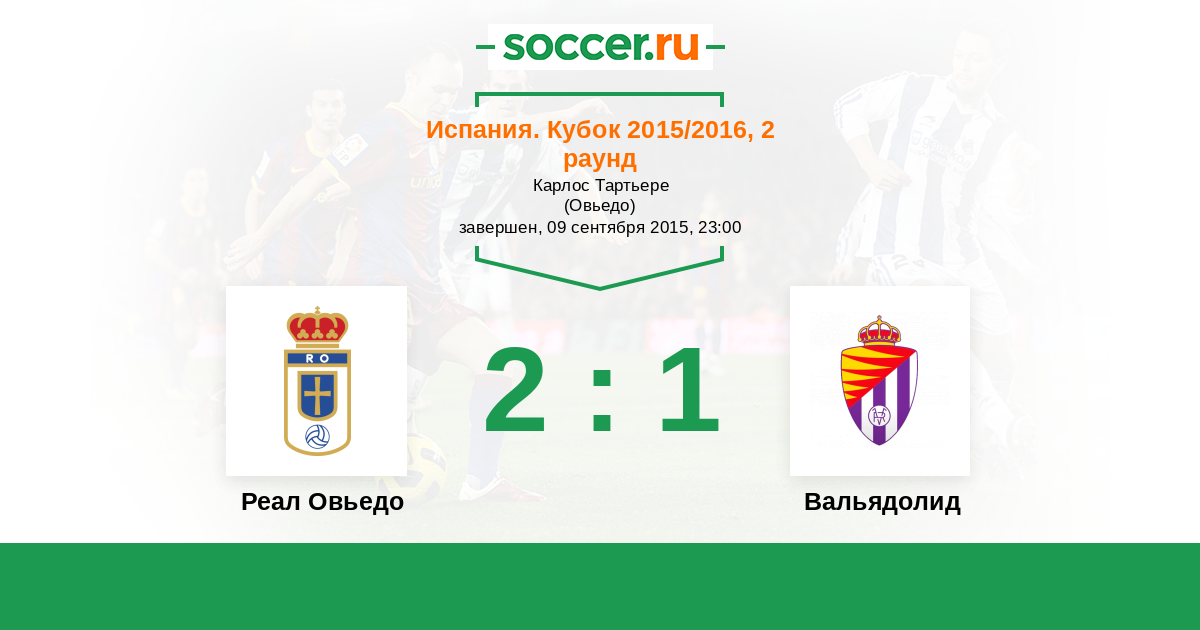 Испания. Сегунда 11.10.2015 Вальядолид Логотип футбольный клуб Вальядолид 2:3 Логотип футбольный клуб Реал Овьедо Реал Овьедо