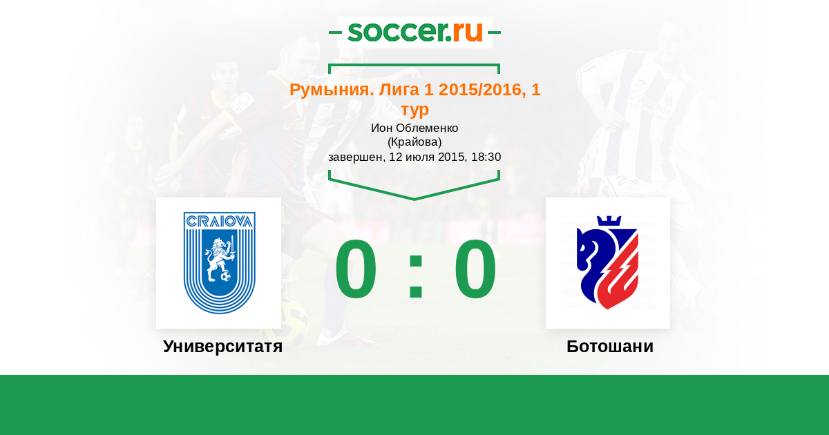 Румыния. Лига 1 19.07.2020 Ботошани Логотип футбольный клуб Ботошани 0:2 Логотип футбольный клуб Университатя Крайова Университатя Крайова