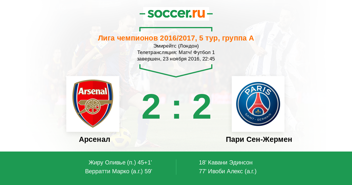 ПСЖ обходит Арсенал за счет гола на чужом поле?