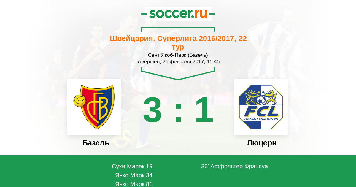 Матчи Швейцария. Суперлига 2016/2017