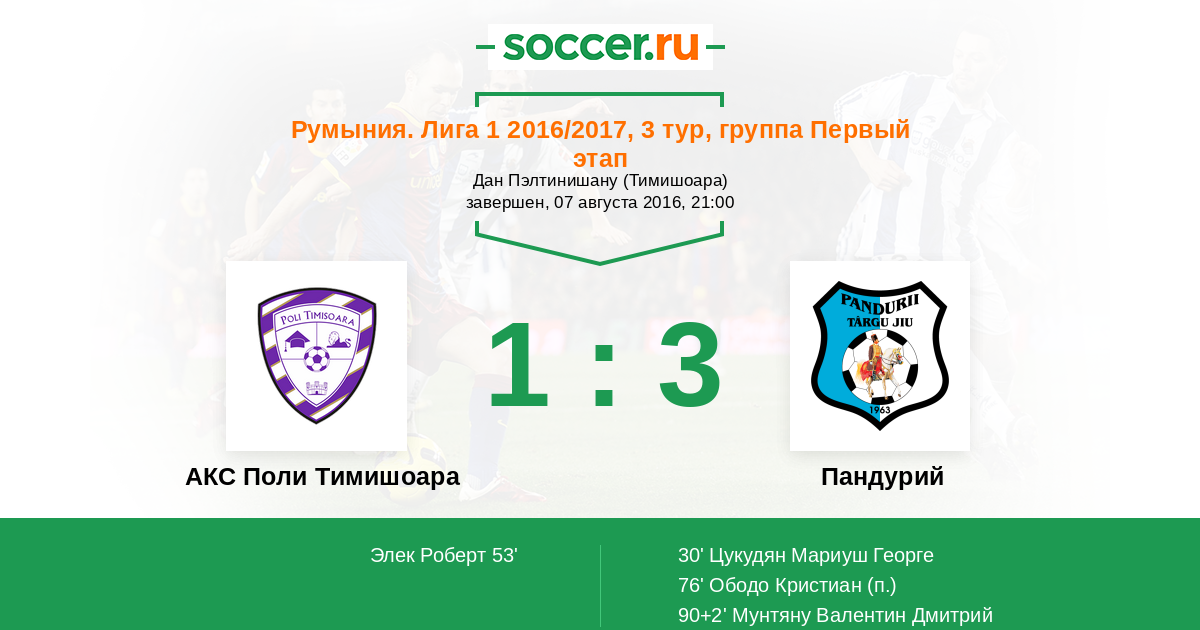 Матчи Румыния. Лига 1 2016/2017