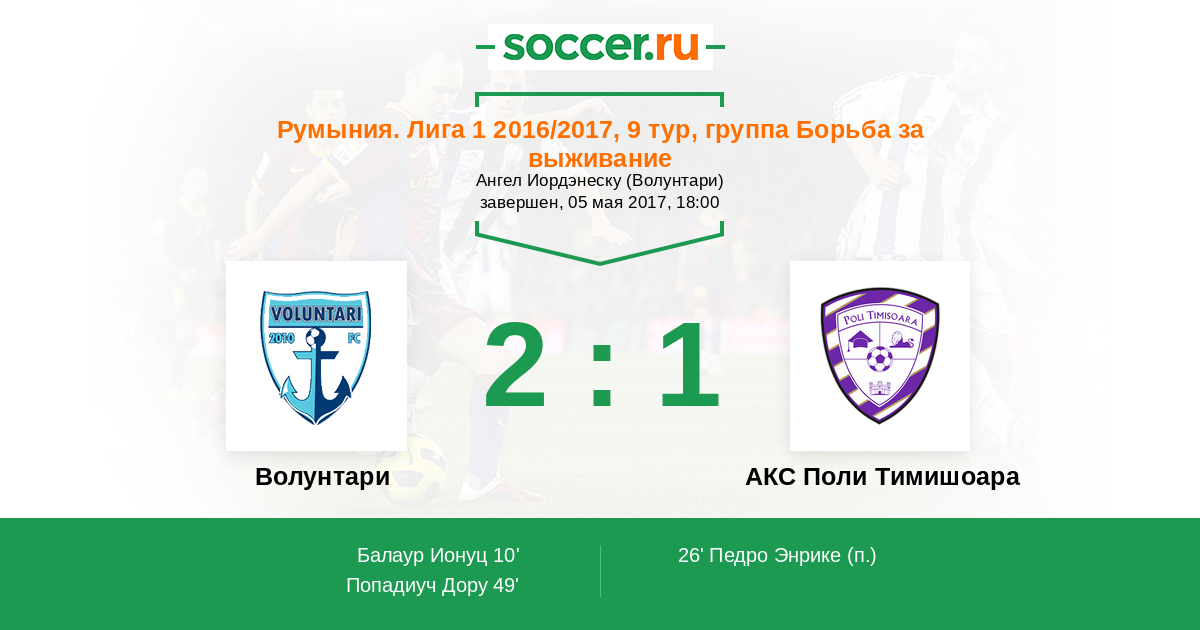 Матчи Румыния. Лига 1 2016/2017