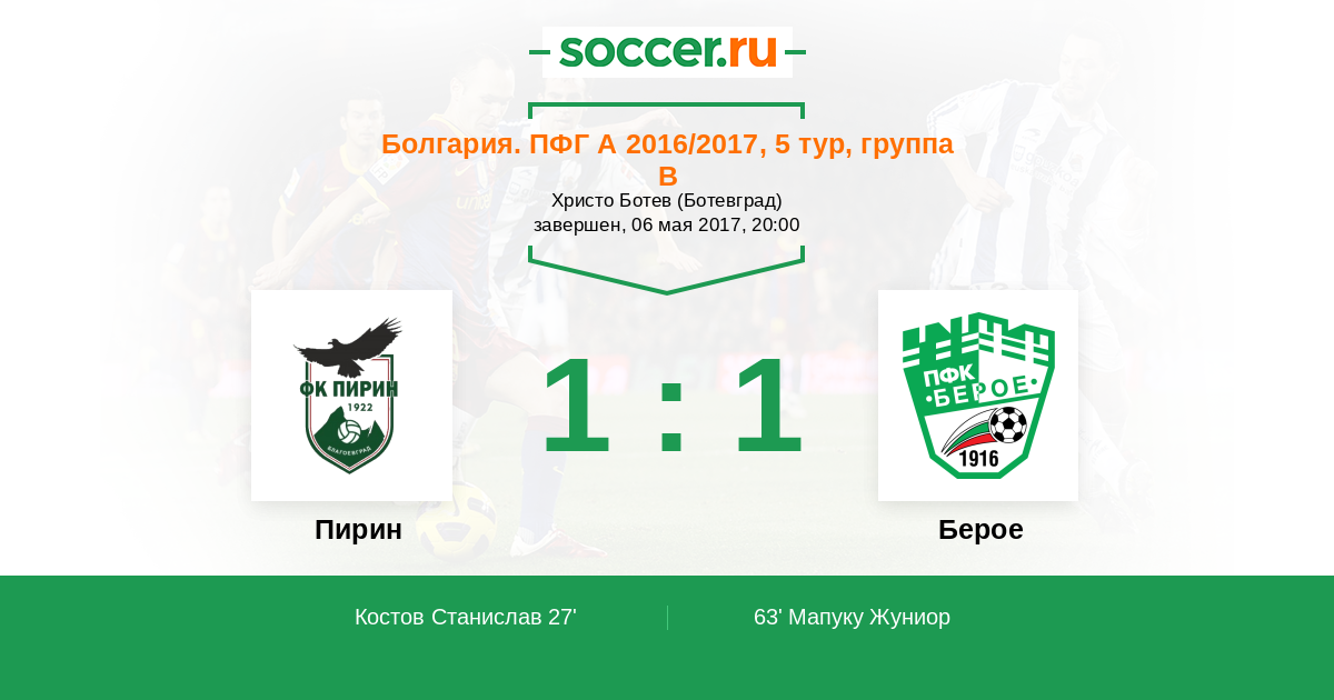 Матчи Болгария. ПФГ А 2016/2017