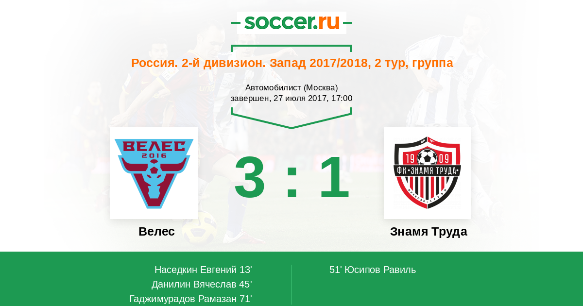 Матчи Россия. 2-й дивизион. Запад 2017/2018