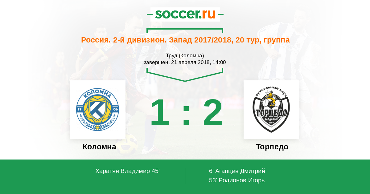 Россия. 2-й дивизион. Запад 2017/2018, 20 тур