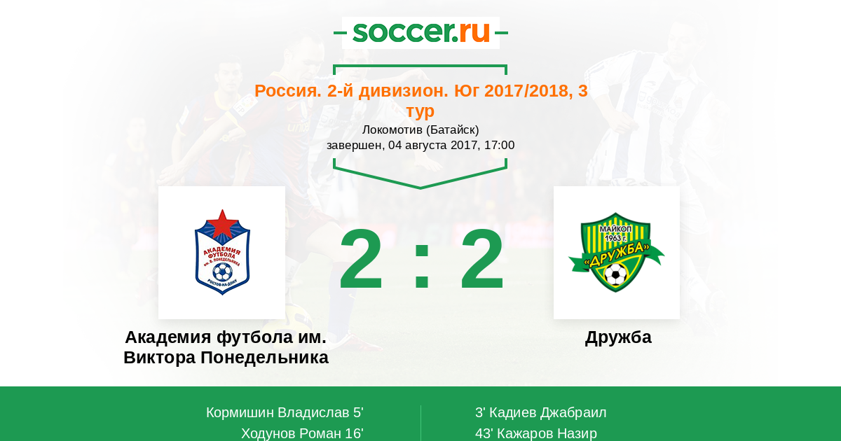 Матчи Россия. 2-й дивизион. Юг 2017/2018