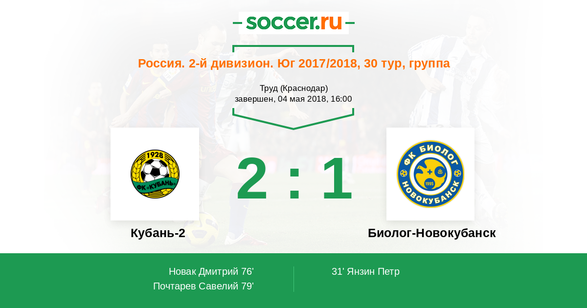Россия. 2-й дивизион. Юг 2017/2018, 30 тур