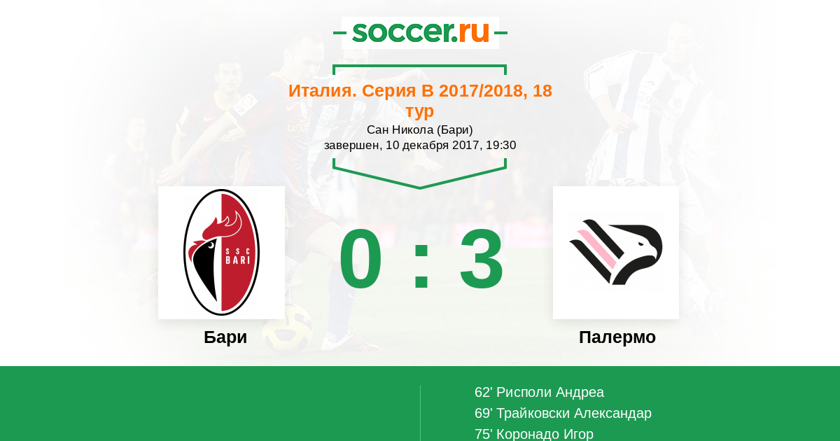 Матчи Италия. Серия B 2017/2018