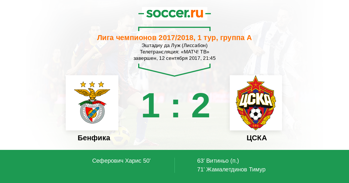 Обе забьют 2.07 Армейцы приложили немало усилий, чтобы пробиться в групповой этап, но в целом квалификацию ЦСКА прошёл достаточно уверено. Не пропустил ни одного мяча, одержал 4 победы. Но сейчас, безусловно, все будет по-другому. Хотя, в целом с жеребьёвкой повезло. «Бенфика», конечно, грозный соперник, особенно у себя на поле. Но «Бенфика» за лето сильно изменилась. Команда продала своих лидеров почти на 130 млн, а на замену взяла в основном молодёжь, без опыта игры в Лиги чемпионов. Да, «Бенфика» действующий чемпион Португалии, но кажется команда стала чуть слабее по отношению к прошлому сезону. Хотя, в любом случае в домашнем матче «Бенфика» фаворит, мы помним, как португальцы играют дома, особенно в части атаки.