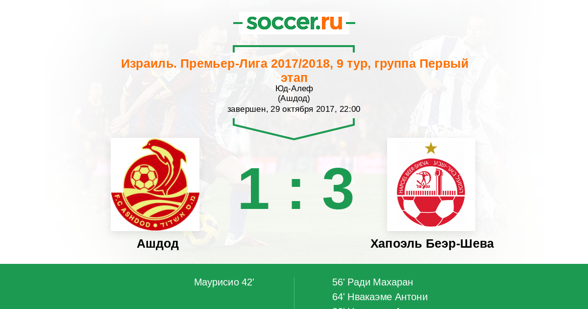 Матчи Израиль. Премьер-Лига 2017/2018