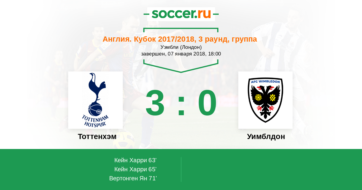 Раз АФК Уимблдон является продолжением традиции клуба, тогда это будет 37 их матч между собой. До этого было сыграно всего 36 матчей - 17 побед Тоттенхэма - 9 ничьих и -10 побед Уимблдона, но для Донс это будет также вторая играл с клубами АПЛ в своей новейшей истории, последний раз они играли против Ливерпуля на кубке и проиграли 1-2.