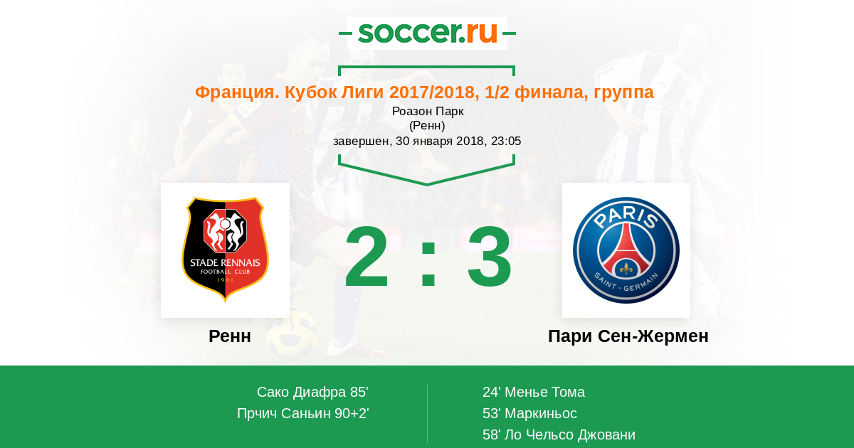 Франция. Кубок Лиги 2017/2018, 1/2 финала