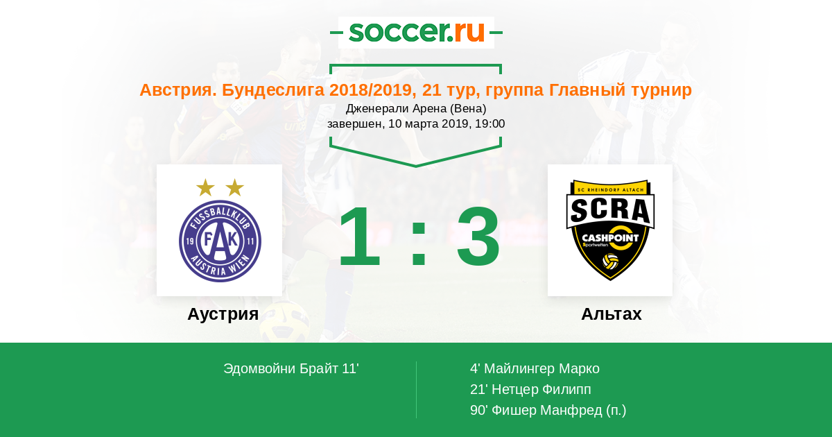 Матчи Австрия. Бундеслига 2018/2019