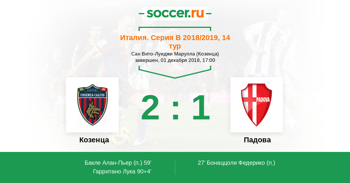 Матчи Италия. Серия B 2018/2019