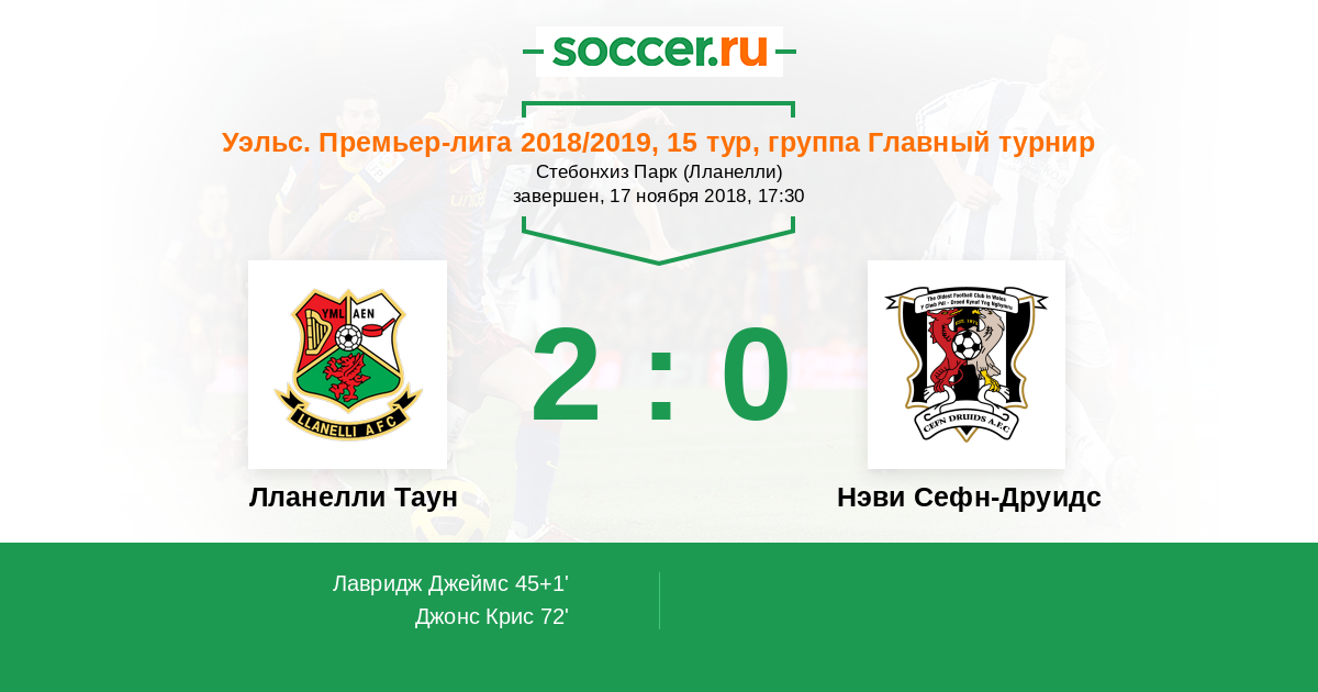 Матчи Уэльс. Премьер-лига 2018/2019